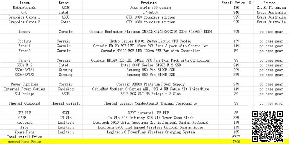 有点可惜,16年的顶配,今年的话相同性能主机的一手已经可以3500拿到。 大家优先,楼主实在想出的话,3000 aud 主机我要了,外设都你都自己留 |