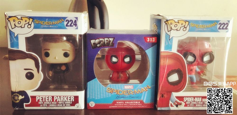 三个漫威蜘蛛侠玩具如图。 Funko Pop的每个17,另一个15,或者三个一起45. 微信:alixh2016