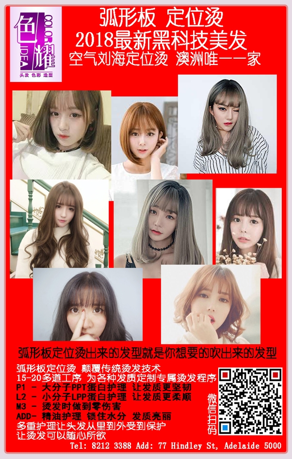 阿德莱德最好的烫发店 ---- 色耀 弧形板烫发 空气刘海 、网红刘海