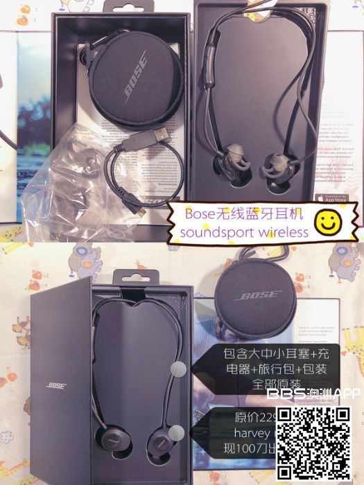 出售闲置bose soundsport wireless蓝牙入耳耳机 原价229购于harvey norman 9成新配件齐全 由于买了别的耳机所以闲置很久转让 100刀 city自取 有意加VX gd4001