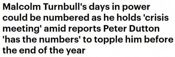 Dailymail 【8月20日讯】年底之前换总理?澳媒爆料称,内政部长彼得达顿(Peter Dutton)已经获得了足够多的党内支持,或将在今年年底之前对谭保的总理之位发起挑战。 (图片来源:网络) Fairfa ...