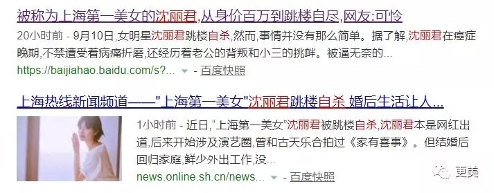 更美 又是一个沉重的事情。不久前,年仅35岁的上海第一代网红沈丽君,选择从28楼跳下自杀身亡。 diss沈丽君嫁了有钱人却并不快乐。(为啥不快乐你心里没点b数吗? ) 表达对沈丽君老公丁丁 ...