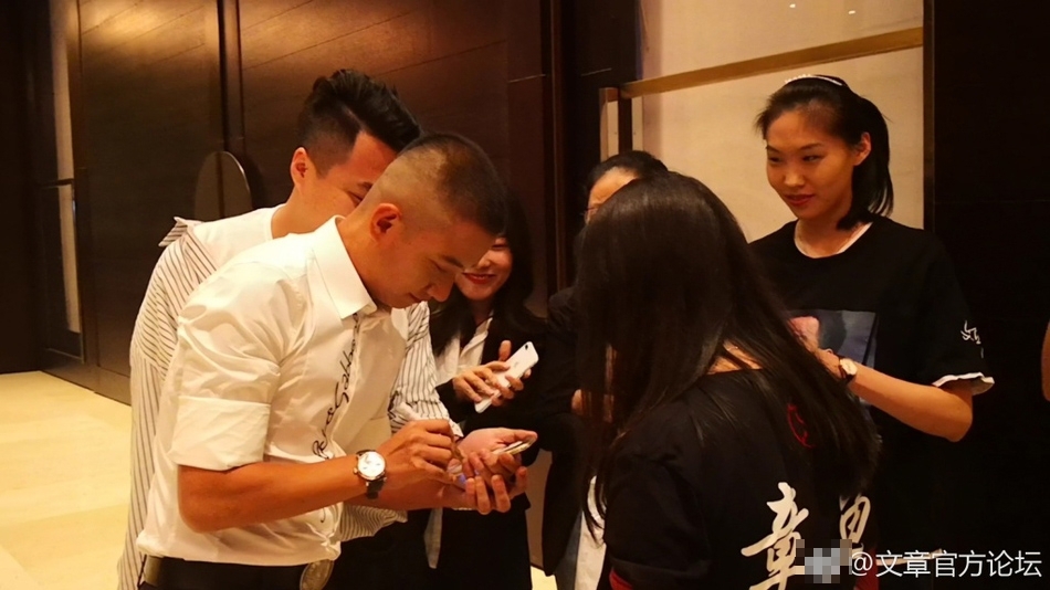 26日,有网友晒出一组文章现身某活动的照片。照片中,文章身材微发福,但是看上去状态很好。他还亲切为粉丝签名,毫无明星架子。