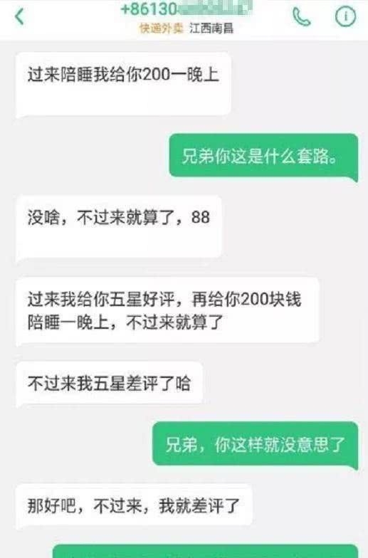 • 外卖小哥被要求200元陪睡,不陪睡给差评,网友:真不要脸!(组图)