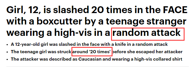 太可怕了! 昆州12岁小女孩上学路上被陌生人划脸! 而且还被划了20次! 目前正在医院接受治疗中! 昨天早上7点40分左右, 昆州Logan市Kingston一名12岁的小女孩正走在上学的路上, 目前,警方正在与一名 ...