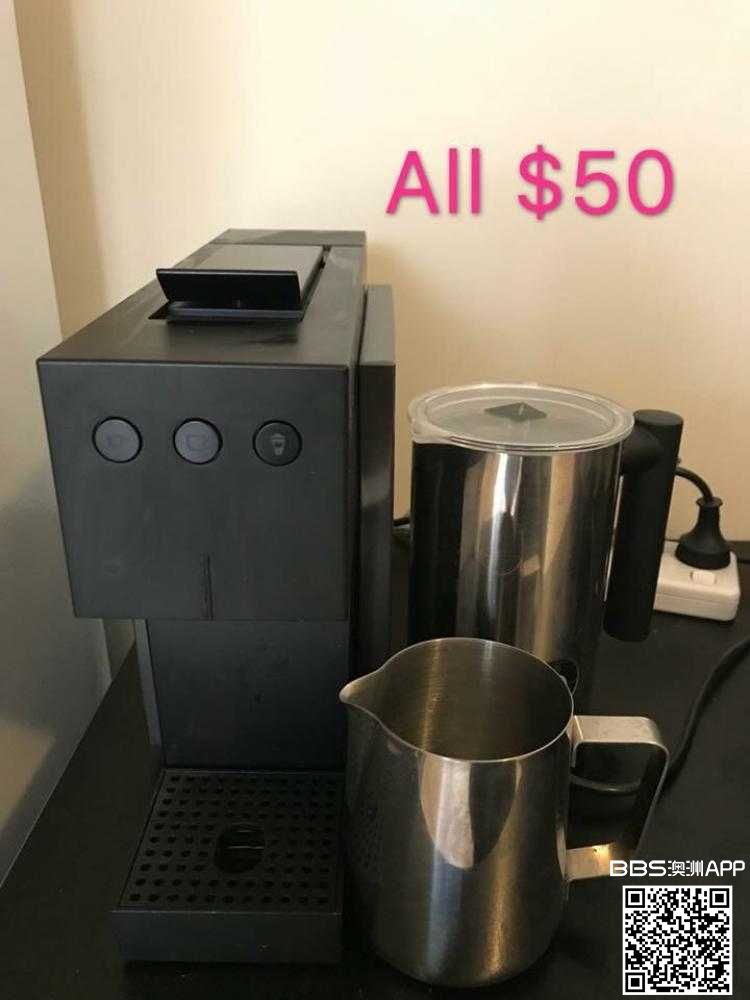 转9.5成新胶囊咖啡机、奶泡机、拉花杯, 3样都拿走50刀,不拆分出售. 请加微信并注明 咖啡机: 195407052