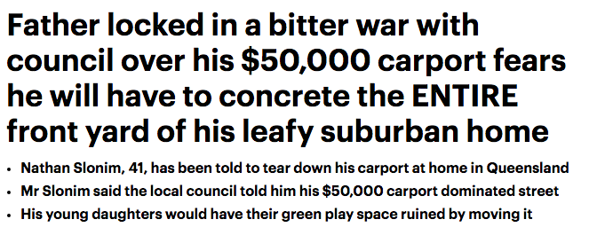 近日,一名有两个孩子的父亲被勒令拆除他自己搭建的价值5万元的车库,尽管他的邻居允许他这样做,但是还是遭到了委员会的反对。 41岁的Nathan Slonim先生表示阳关海岸的委员会告诉他车库需要拆除掉,因为它占据了 ...