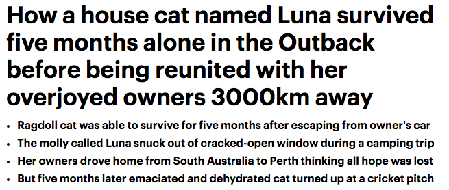 简直难以置信!一只纯正的布偶猫在阿德莱德走丢五个月之后,竟然还能与3000公里外的主人团聚! “我现在仍然感到难以置信,说实话它并不是一只非常聪明的猫,它也从来不冒险。”Powell女士说。 在失踪了 ...