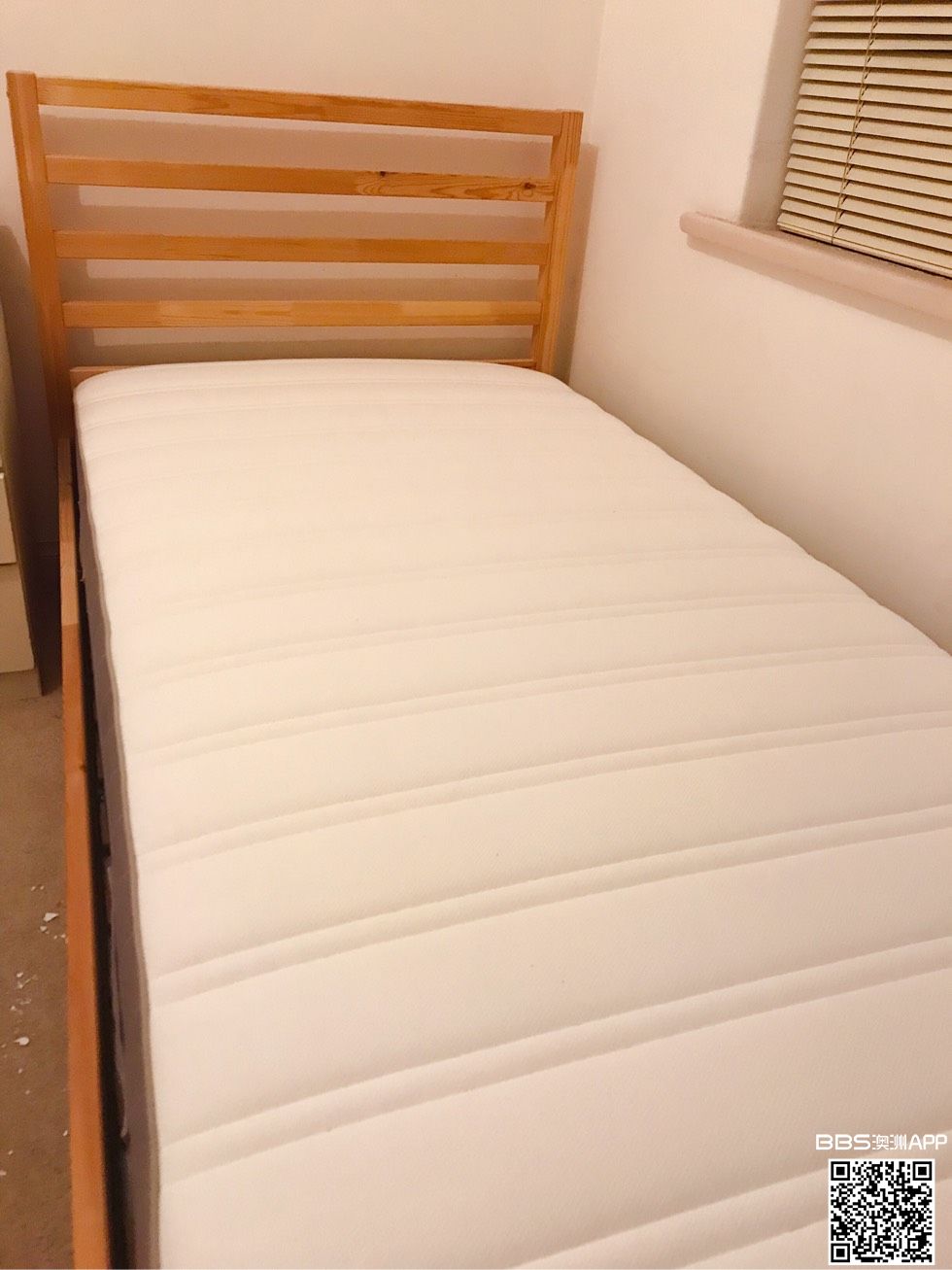 买的全新宜家单人床,床架结实,床垫厚实干净。 几乎没怎么用过!!! $90 打包拿走 电话:0415851015 微信:892525267