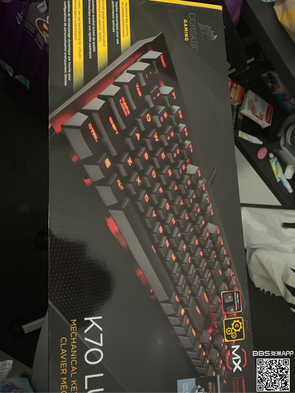 9成新 只用过两天 269刀 corsair k70 lux 红灯红轴 人在ct wx: sb19990226 电话 0424161503 需要咨询 只是外包装拆的时候有点暴力,损坏一丢丢