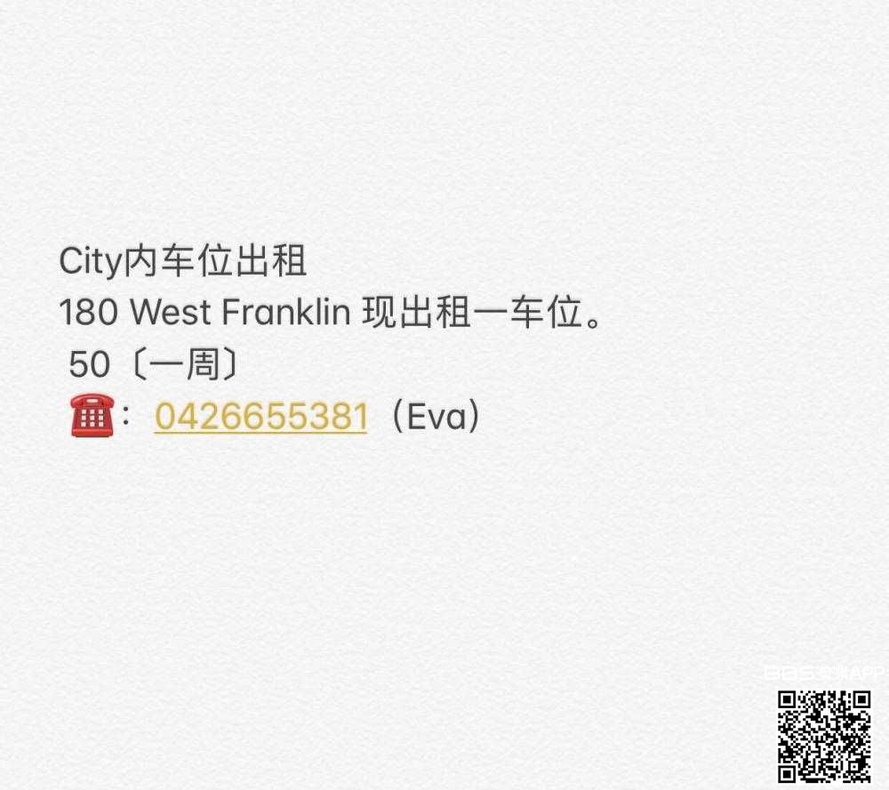 180 West Franklin 现出租一车位、50/一周