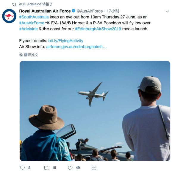 就在今天早上10点! 不少人在阿德莱德City里都听到了隆隆的轰鸣声! 抬头一看—— 呀!有飞机! 航空迷和军事迷们, 千万不要错过这一次近距离接触战斗机的机会哦! 购票链接:https://www.ticketmaster. ...