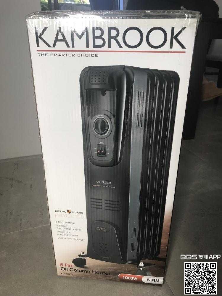 出一个Kambrook 5 Fin oil heater 250 x 250 x 945 mm, 1000W, 3种加热模式+温度微调,滚轮方便移动,过热保护 官网70刀 现20出 有意加微信注“heater” 电话0451801025