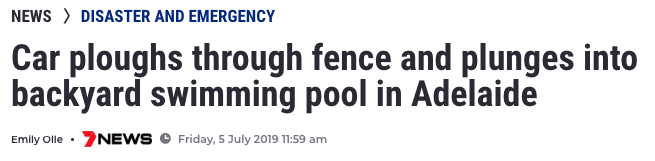 今天中午,一名阿德莱德女子驾车撞入一住宅后院, 救援人员随后赶到,将车从泳池中吊起。 该女子已被送往医院接受检查,所幸没有受重伤。