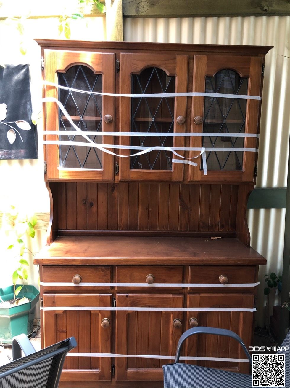 橱柜出售,分上下两层的,上层是玻璃窗的,下面是抽屉和柜子,都是好的,古风的橱柜,白色的胶带固定抽屉和柜门方便移动,$150,可小刀!woodcraft自取