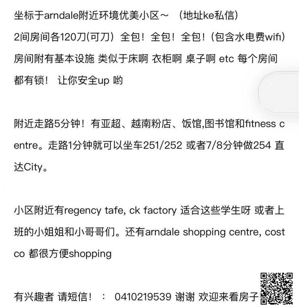 西北区arndale 附近2间干净舒适房间出租啦120全包!!