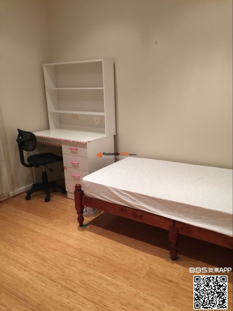 现有单人间出租 双人床 单人床任选 配置大衣柜,电脑桌 。只需要跟一个人公用卫生间。$150一周全包 可短租12周起 水 电 网 全包,家具齐全 环境优雅 独立衣柜 拎包入住。 联系方式 0450930710 只接受短信 ...