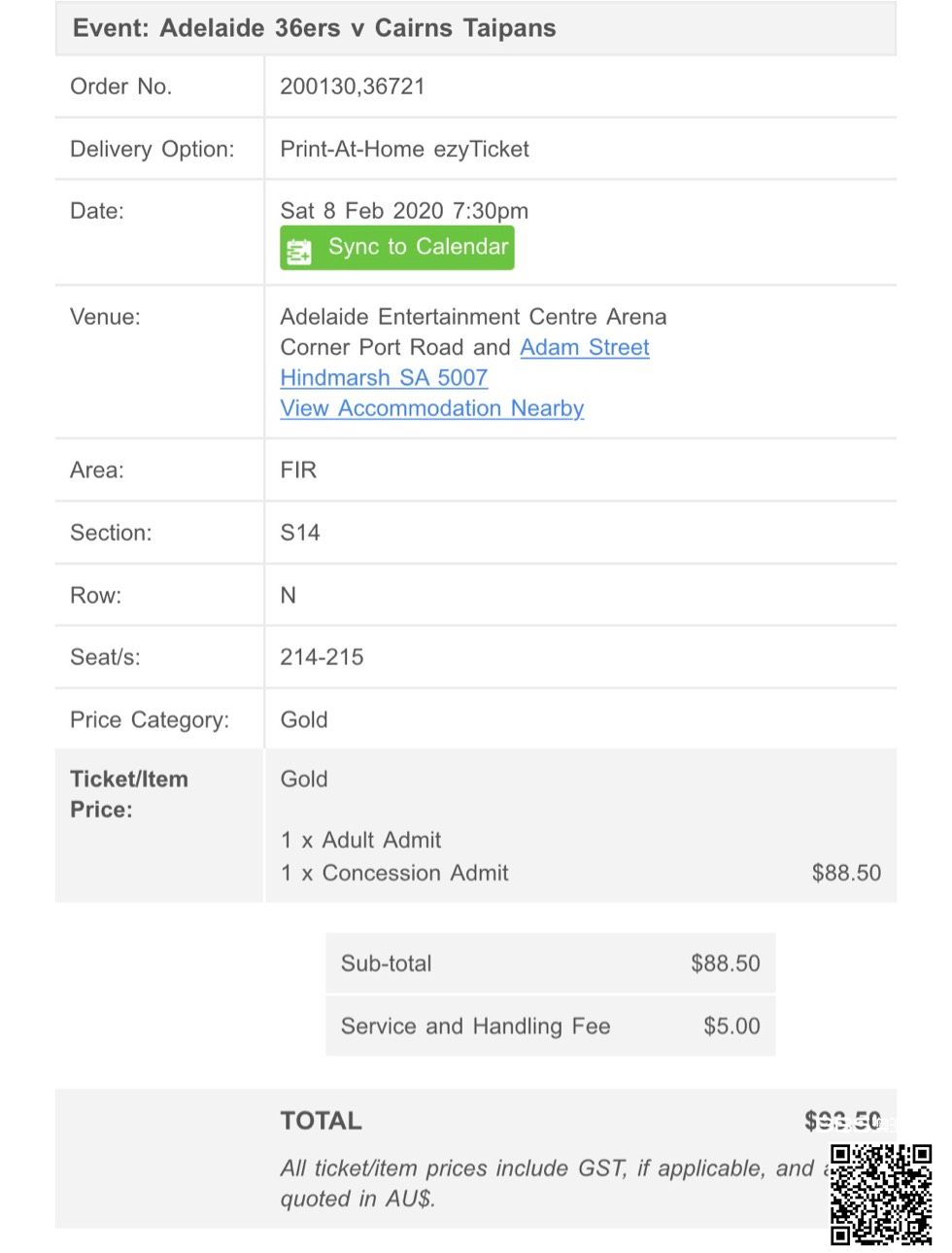 买了两张下周六 阿德36er 的主场比赛球票,$93.5,一张全价票,一张concession票,有事去不了了,感兴趣的私信我,$70出,谢谢