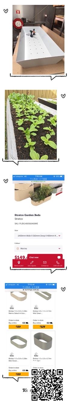 用做招牌用的铝塑板来制作的,永远不生锈。 用铆钉连接四角,坚固不会散开。 带底的,比无底的节约很多水,保湿效果更持久。 价格非常美丽,只要$99。 bunnings 无底的小尺寸,快要double 价了。 订购2个以上,送货 ...
