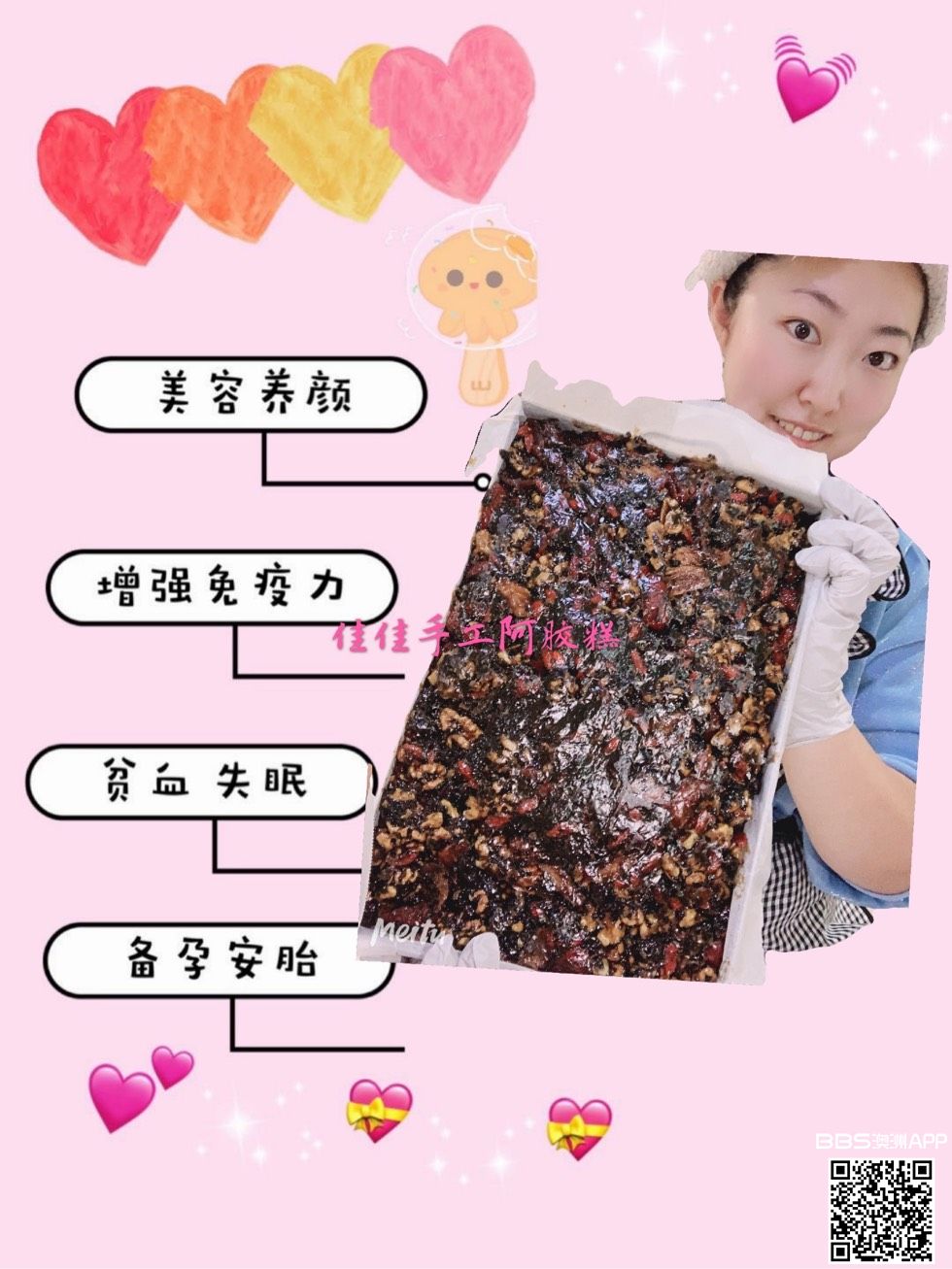 加微信送送送 您有吃过手工的阿胶糕吗想尝一下新鲜食材现熬的阿胶糕吗加佳佳的微信就给您寄吃免费的阿胶糕 选用山东正宗阿胶 配以黄酒、红枣、现剥核桃、枸杞、黑芝麻、老黄冰糖 古方熬制4天12道工序的制作流程. ...