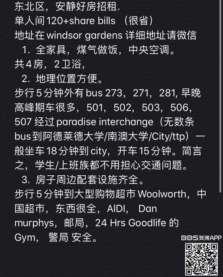 东北去 windsor gardens 单间出租