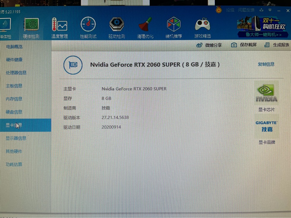 出显卡技嘉2060 Super,四根8GB内存条