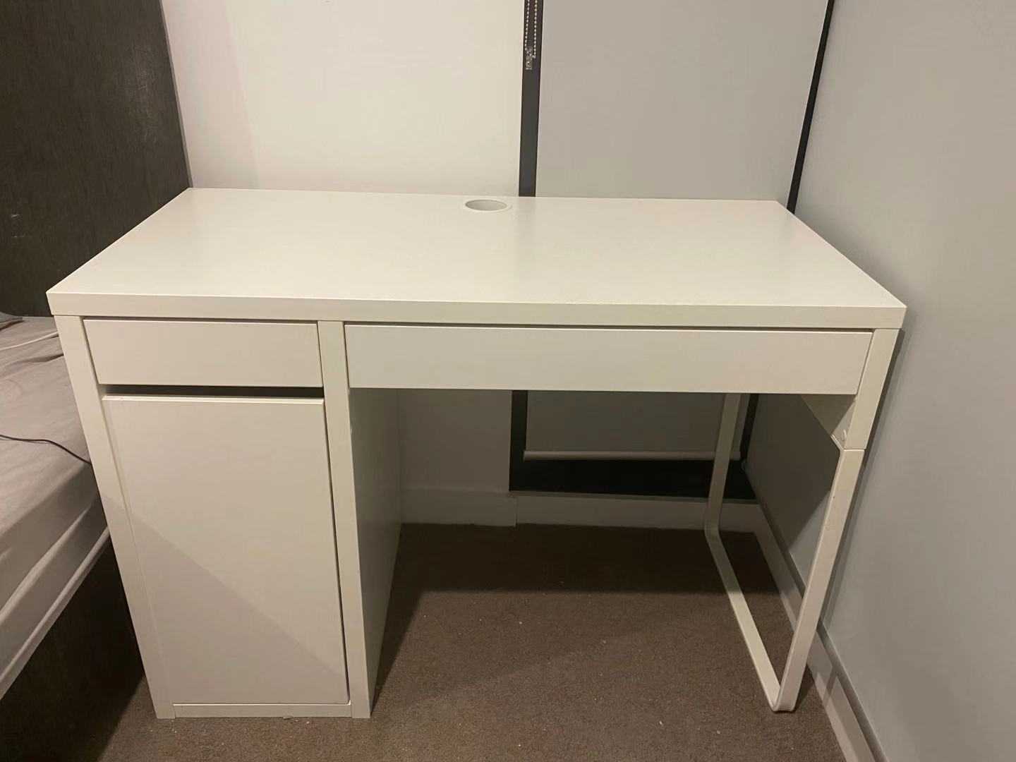City自取,宜家全白电脑桌,100cm*50cm*75cm 桌子基本全新$75超低价出售,送配套带轮椅子如图,有意加微信,电话0451696606