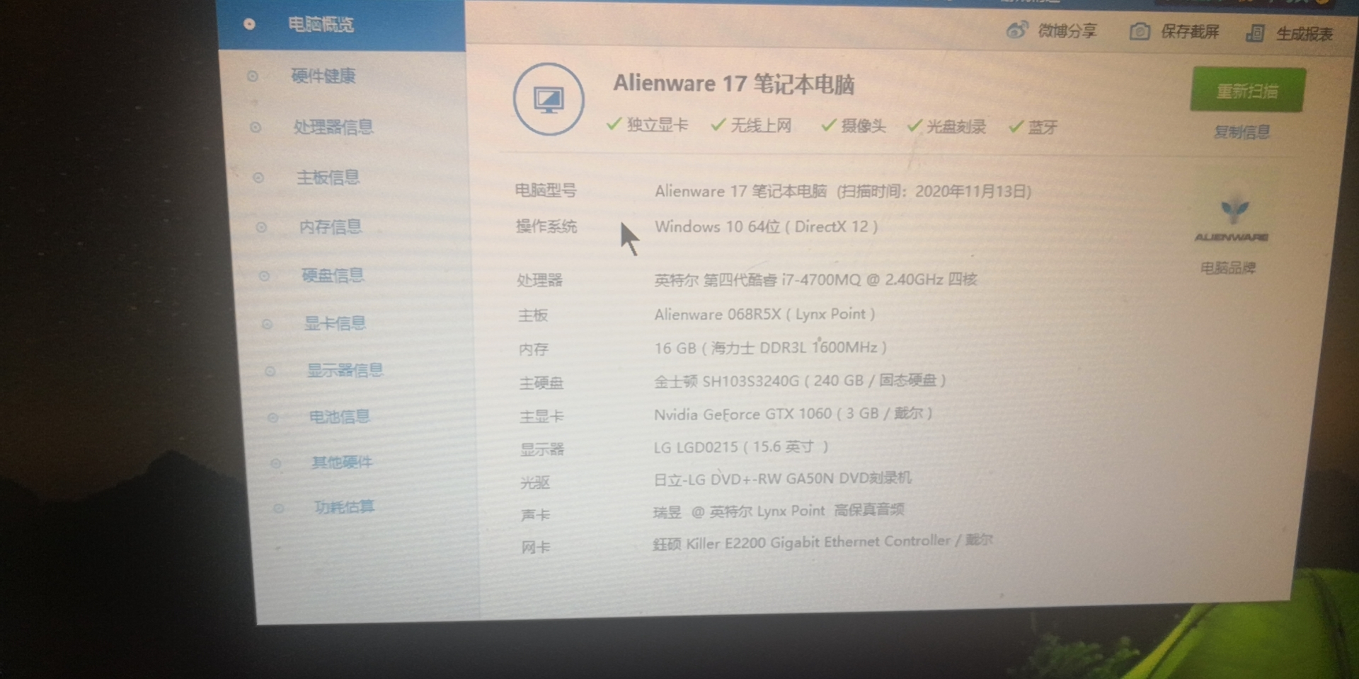 外星人笔记本,配置如图 价格1000可议 电话0492351808