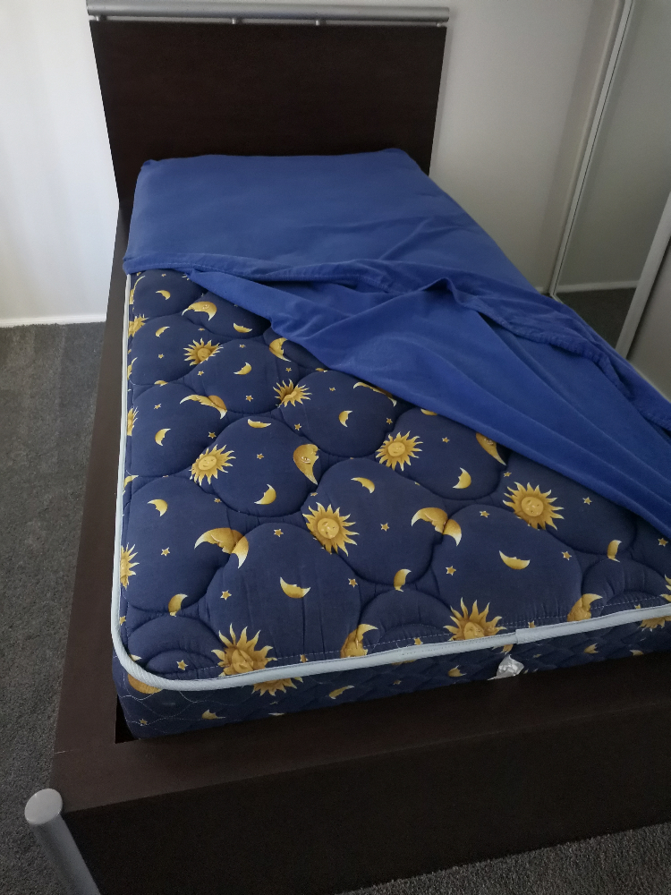 #出让单人床+床垫#总价55刀(买就送床垫套一个)。联系电话0481308123,微信hlz0519,对不起,不接受短信与私聊。坐标:newton