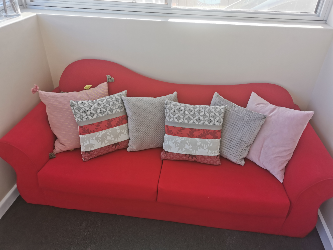 (已售)人闲置红色沙发,几乎全新的。 (抱枕不卖)
