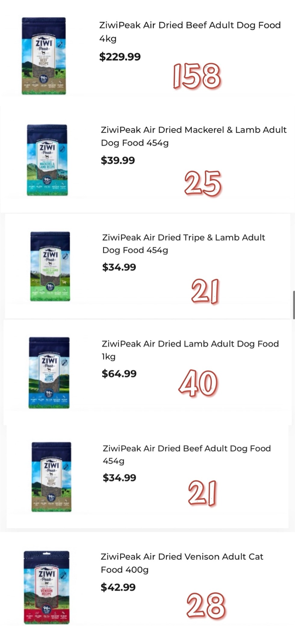 出以下全新的ziwi狗子肉干 宠物店六折左右出!