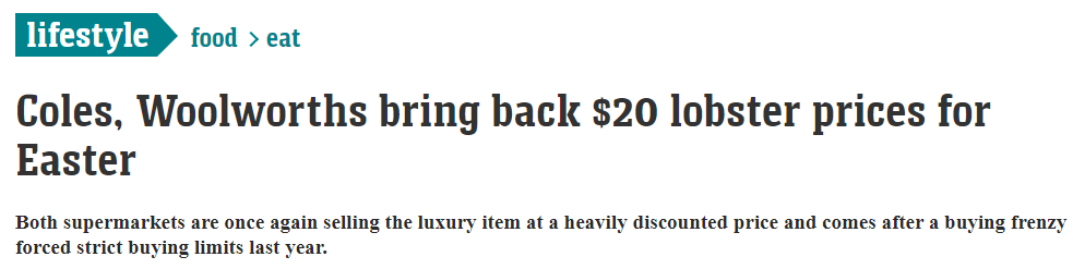 $20一只龙虾回来了!Coles和Woolworths又开始海鲜大促了!这次要限购了!