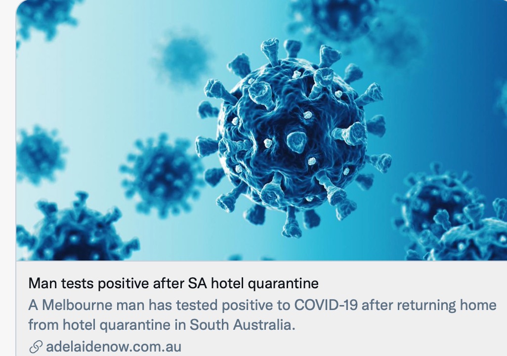 一名墨尔本男子从南澳的隔离酒店回家后,被确诊COVID-19阳性。 维多利亚州卫生部门说,这名30多岁的男子在周六出现了症状,昨天进行了检测,今天上午收到的检测结果为阳性。 他于5月4日抵达墨尔本东郊Woller ...