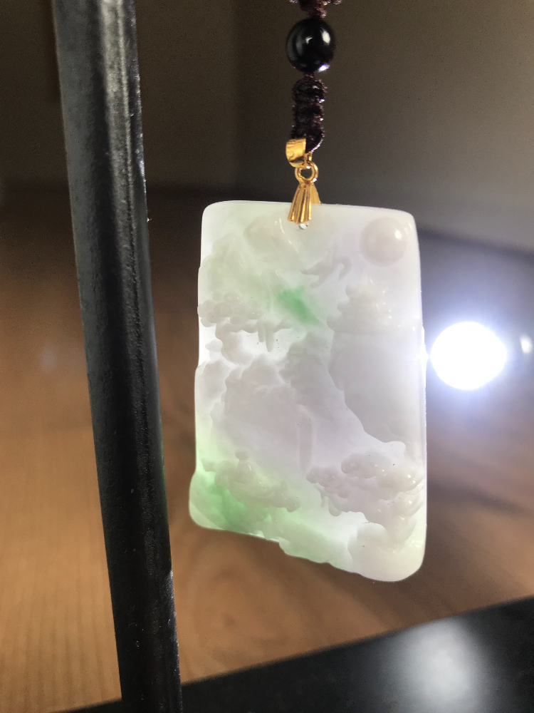 #古董古玩玉石收藏#阿德莱德古董店# 这是非常难得见到的翡翠春带彩吊牌。如图紫外灯下无荧光反应,证明颜色为纯天然。雕刻精细。纯手工雕刻。感兴趣加微信:hongzhibei . 请注明理由。转让价格$3000。