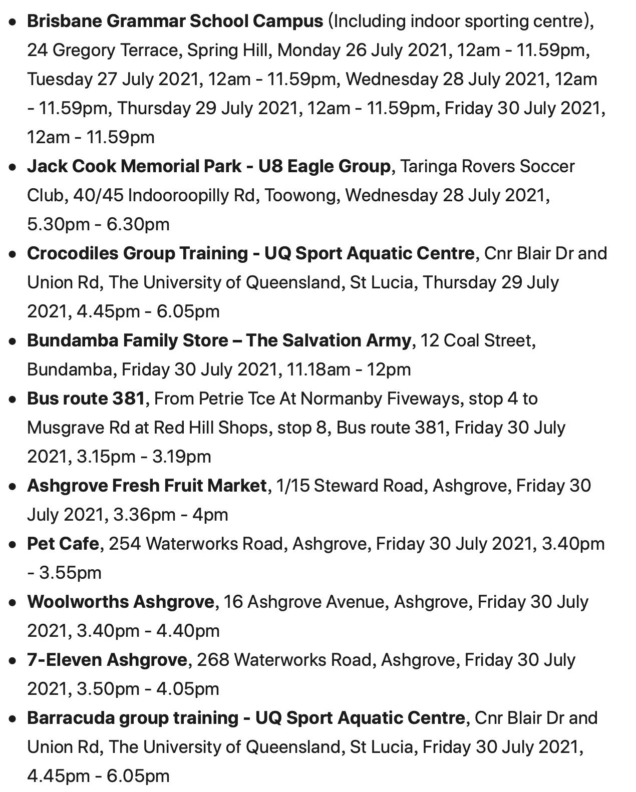 昆士兰的COVID-19疫情暴露场所名单继续增加。 昆士兰卫生部周四扩大了疫情暴露场所名单,包括一家Woolworths超市、一家7-Eleven商店和多个体育场馆。 任何去过过以下地点的人必须立即接受检测,完成在线接触追踪 ...