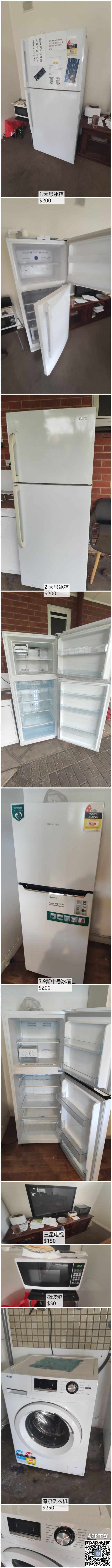 毕业回国,现出售所有家具+家电 状况良好均正常使用 共六张床+床垫(5*double,1*single) 三套书桌椅 全木大餐桌+六张软座椅子 木质衣柜*3 木质床头柜,鞋架,电视柜,全身镜,金属垃圾桶等 冰箱*3(两大一 ...