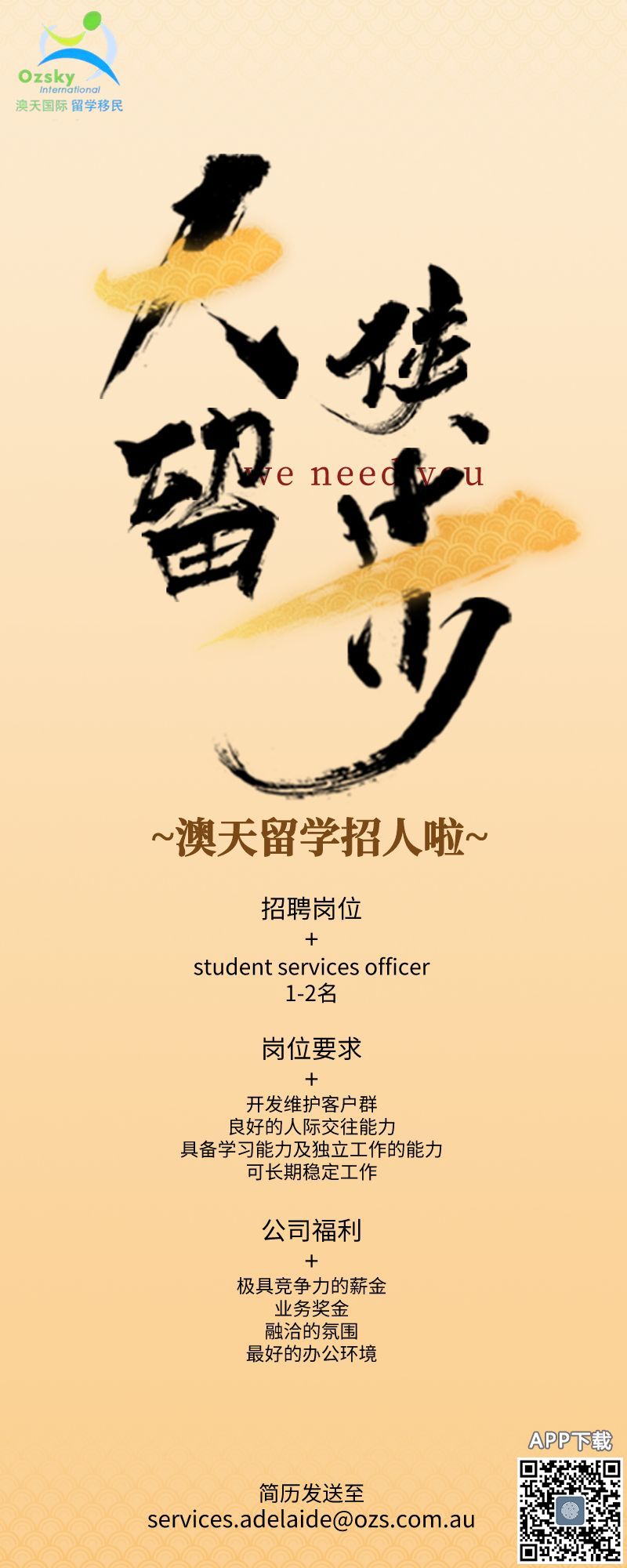 !澳天国际留学招人啦!