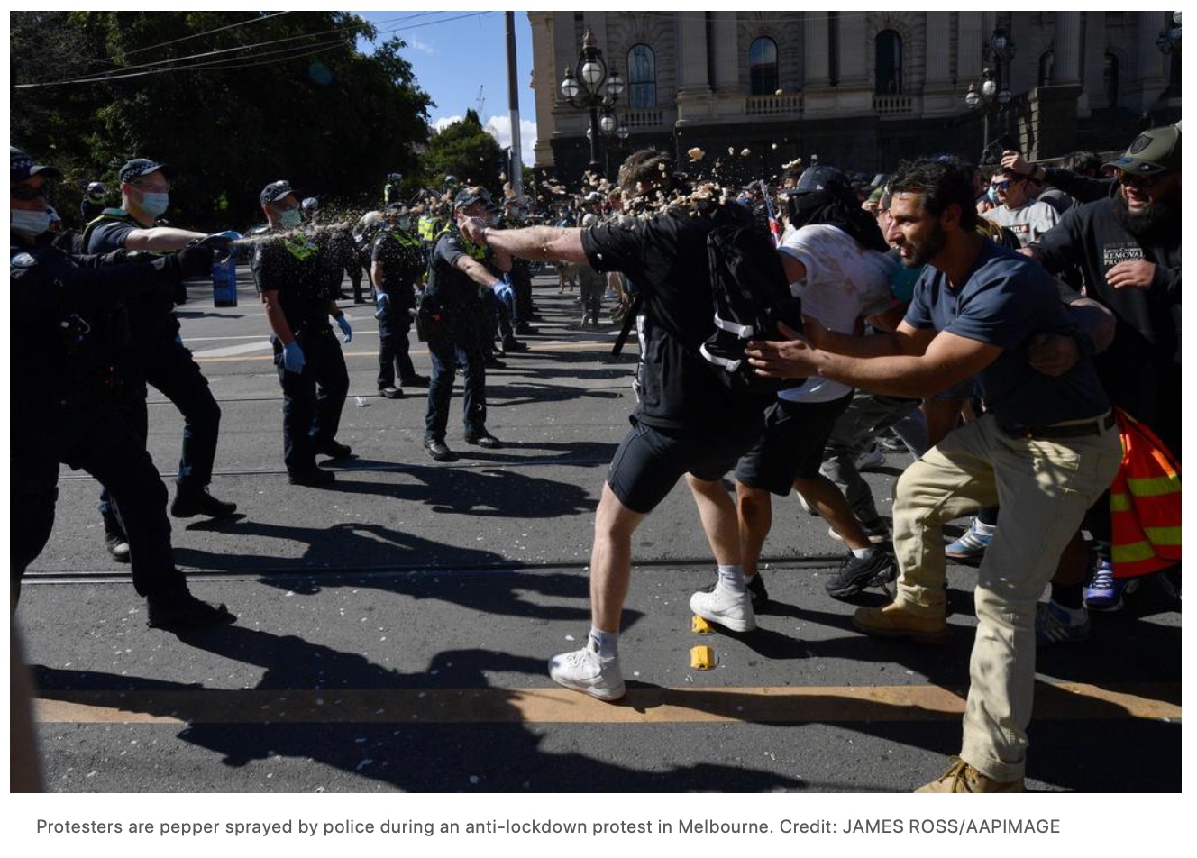 数千人涌上澳大利亚各个州首府的街头,抗议COVID封锁。 David Elliott告诉记者:"(警方)不会有所保留。” 副厅长Mal Lanyon说,周六驻扎在悉尼周围的1400名警察将包括防暴队、骑警队、警犬队和公 ...