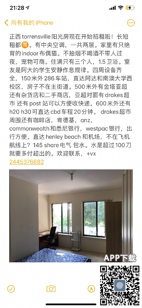 Torrensville 一间房招租~租期价格价格可议
