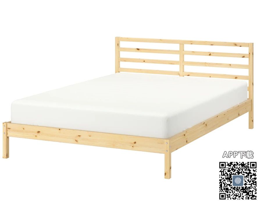 九成新queen size宜家木床架 ,40刀 上门自提,我已经拆成几个主体结构了,重新组装就很快,最多20分钟. 类似图上的样子.