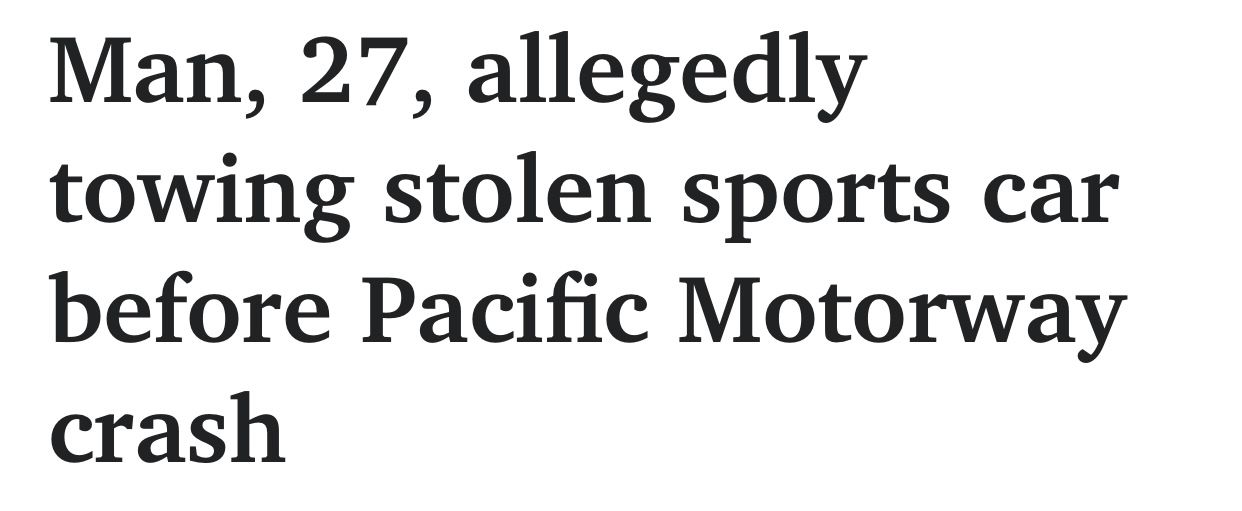 27岁男子在Pacific Motorway上拖拽被盗跑车时发生车祸