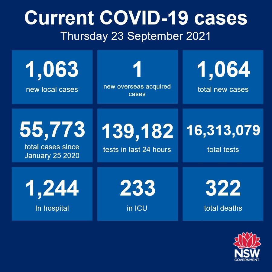 在截至周三晚上8点的24小时内,新南威尔士州已经报告了1063例新的COVID-19本地病例,还有6起与病毒有关的死亡报告。 目前约有1244名COVID-19患者需要在医院接受治疗,其中233人在重症监护室,其中112人需要通 ...