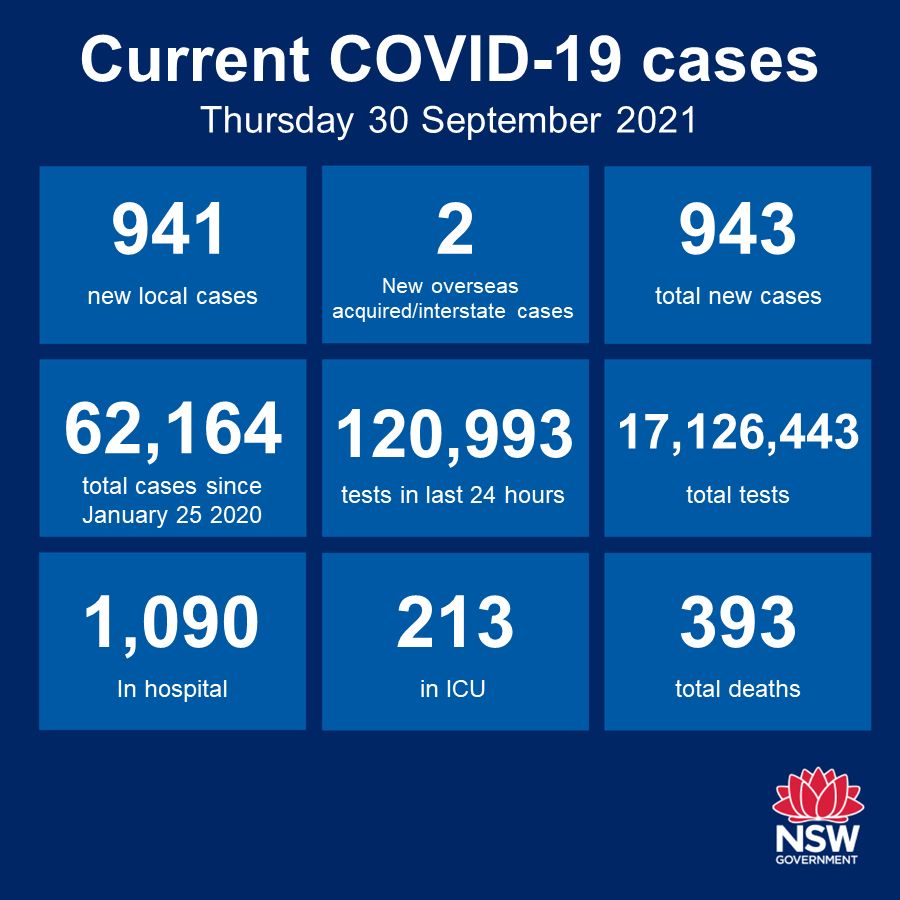 在新州州长暗示可能改变重新开放路线图后,新南威尔士州已经记录了941个新的Covid-19病例。 Berejiklian女士还表示,政府正在实施提前一周开放学校的计划,以便在达到80%的全面疫苗接种率的里程碑后恢复课 ...