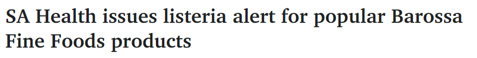 南澳卫生部发出警告,提醒南澳人不要食用Barossa Fine Foods公司的特定肉馅饼,这些产品在周末因可能受到污染而被召回。 南澳卫生部的一位发言人说,listeria感染通常以类似流感的症状开始,如发烧、发冷、 ...