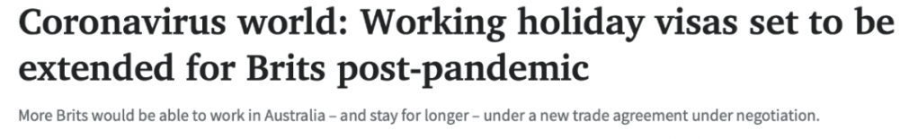 澳大利亚准备让更多的英国人持working holiday签证入境,并延长其逗留时间,以抵御大流行病带来的任何可能的劳动力短缺。 新的自贸协定预计要到7月1日才会生效。 图文来源:The Advertiser 原文链接 ...