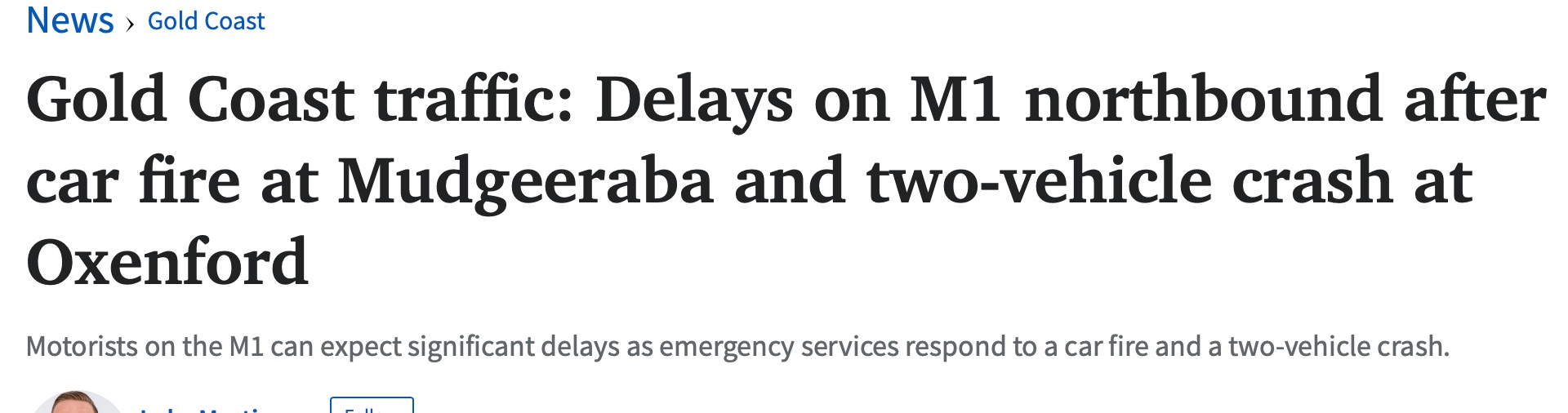 昆州M1公路上,紧急服务部门对Mudgeeraba的一场汽车火灾和Oxenford的一场涉及汽车和摩托车的车祸作出了反应,因此M1将出现严重延误。 图文来源:couriermail 原文链接