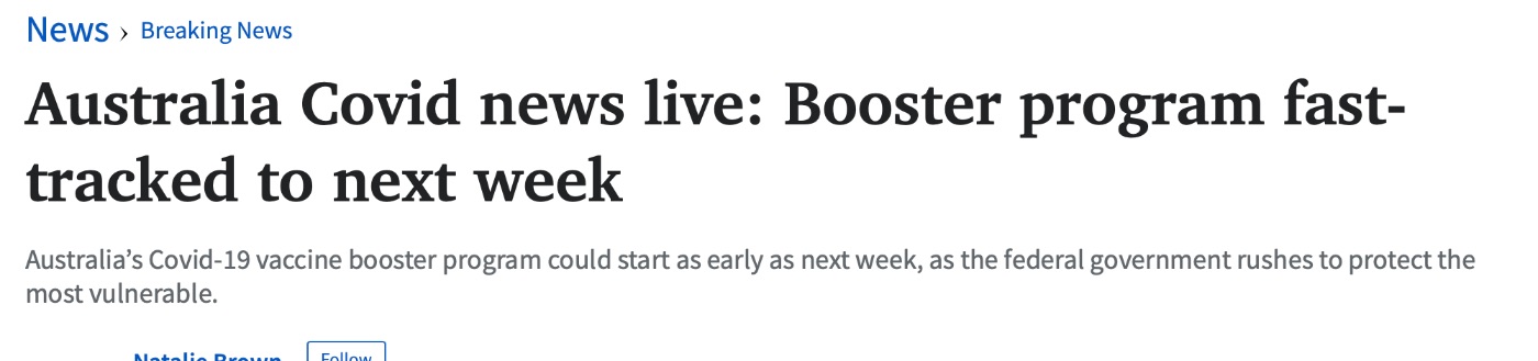据《澳大利亚人报》报道,澳大利亚的Covid-19疫苗强化计划最早可能在下周开始,联邦政府急于提高老年护理居民和保健工作者的免疫力。 我们已经说过,老年护理服务的开始日期是11月8日,但确实有些设施可能在 ...