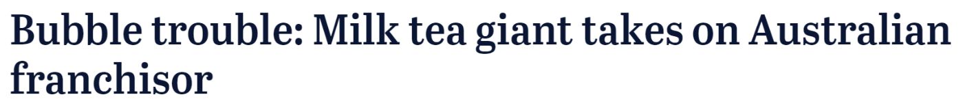 澳洲奶茶连锁店Sharetea被起诉!台湾母公司欲终止其品牌使用权,或影响到全国80多家门店! 受欢迎的奶茶品牌Sharetea背后的一家悉尼公司,正在与台湾特许经营伙伴作斗争。据悉,台湾母公司试图阻止Sharetea在澳大利 ...