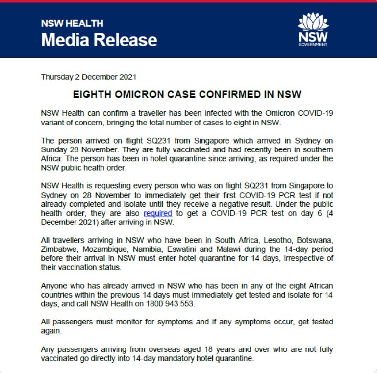 新州录得第八例Omicron变体病例!全澳第九例!