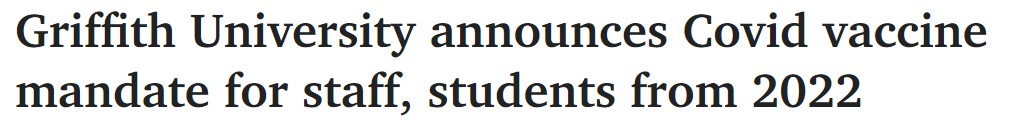 昆士兰一所大学的副校长警告学生,除非他们接种疫苗,否则可能无法完成学位。 Griffith University的一位发言人说,为了让大学里的每个人都保持安全,"接种疫苗是最好的办法"。 &q ...